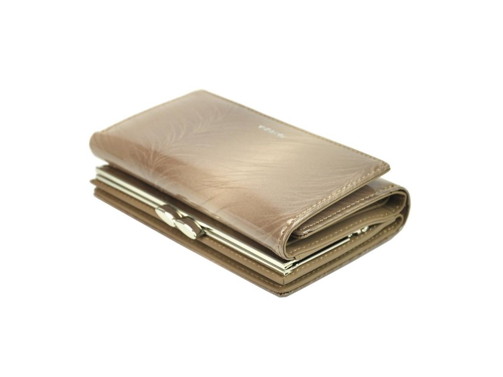 - povrch peněženky je lesklý a je strukturován do imitace kapradin či tisu