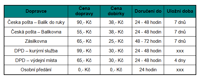 - doručení na jakoukoliv adresu po celé ČR do 48 hodin od provedení objednávky