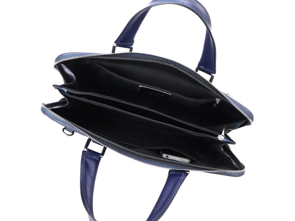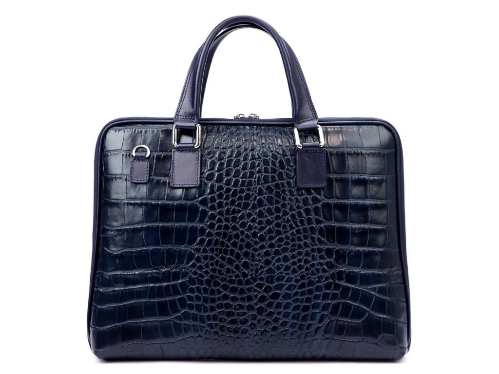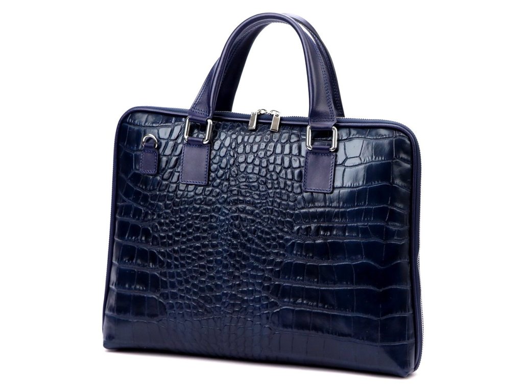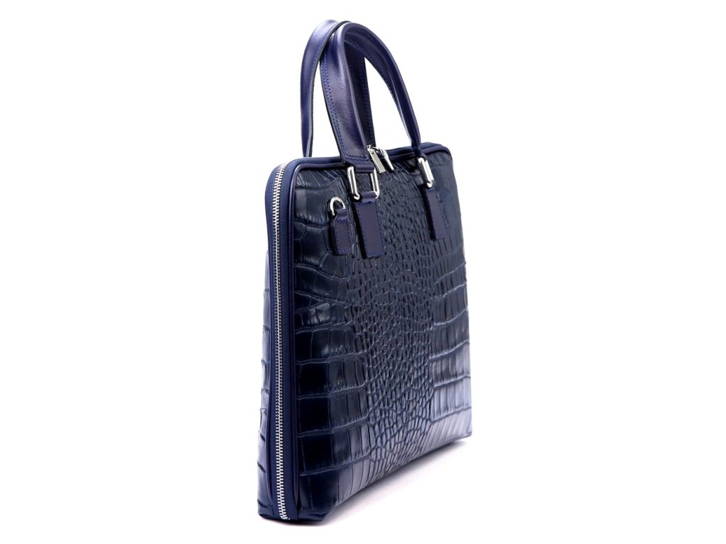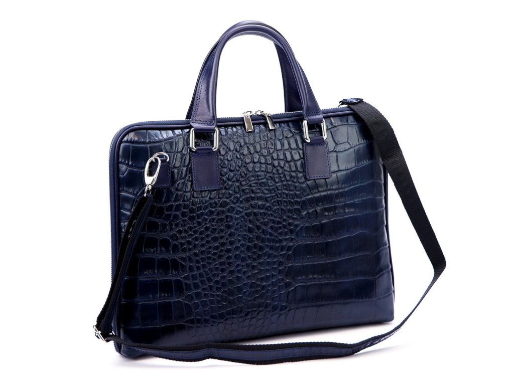 - luxusní tmavěmodrá kožená taška na notebook