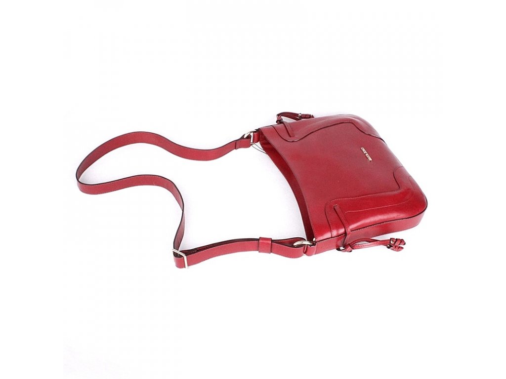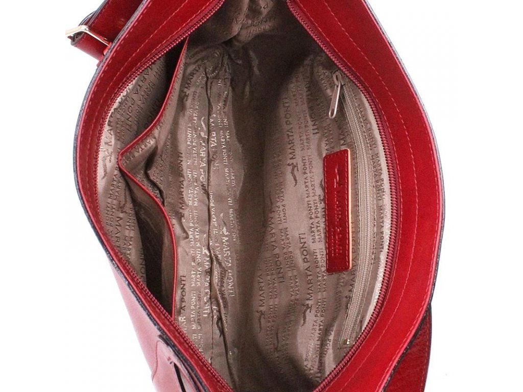 Kožená dámská crossbody kabelka Marta Ponti o rozměrech 32 x 22,5 x 6 cm v tmavěčervené barvě