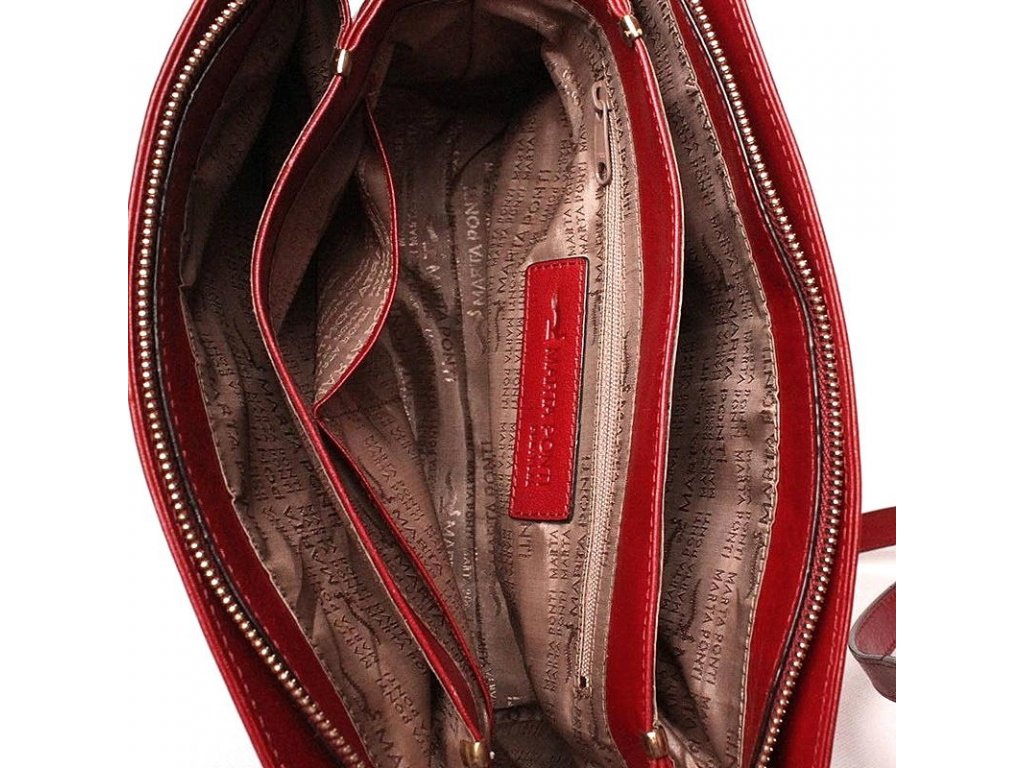 Luxusní dámská kožená crossbody kabelka Marta Ponti no. 205 tmavěčervená