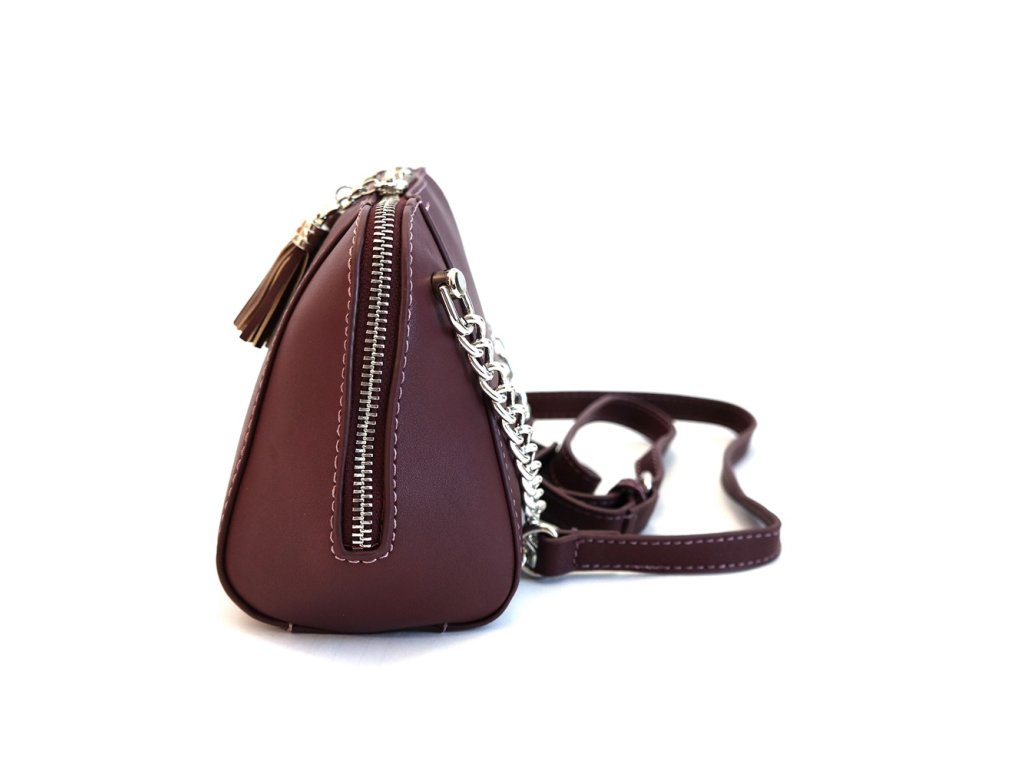 Malá crossbody kabelka o rozměrech 24 (18) x 15 x 10 cm ve fialové (vínové) barvě