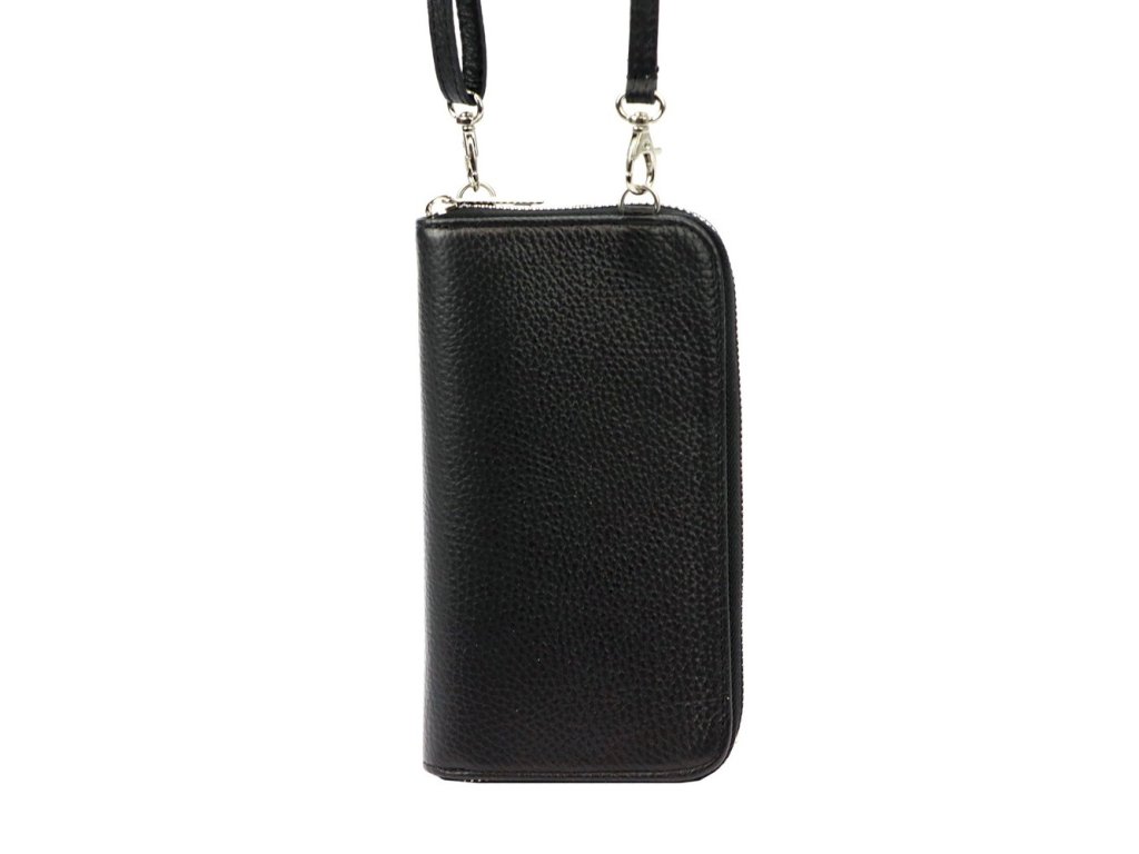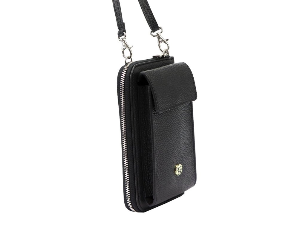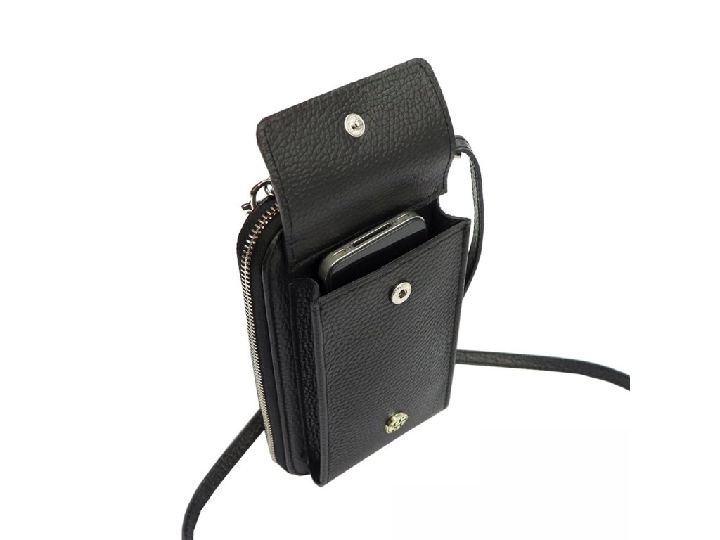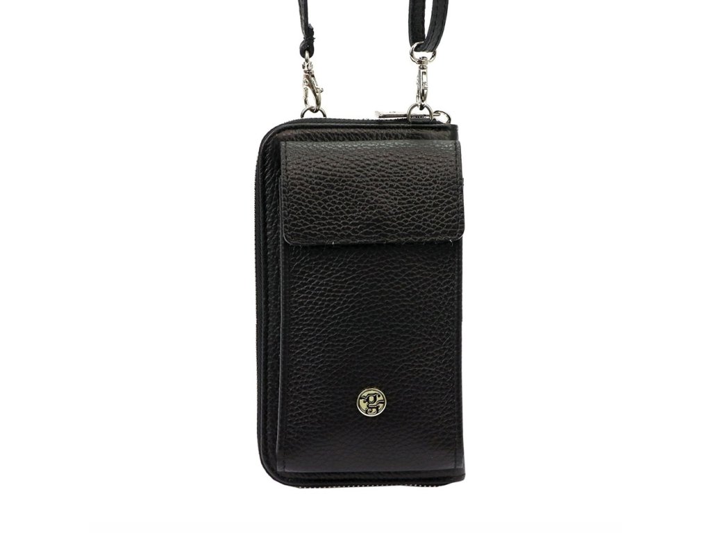 Kabelky Malá kožená crossbody kabelka (pouzdro na mobil a peněženka) Gregorio 07 černá - gold