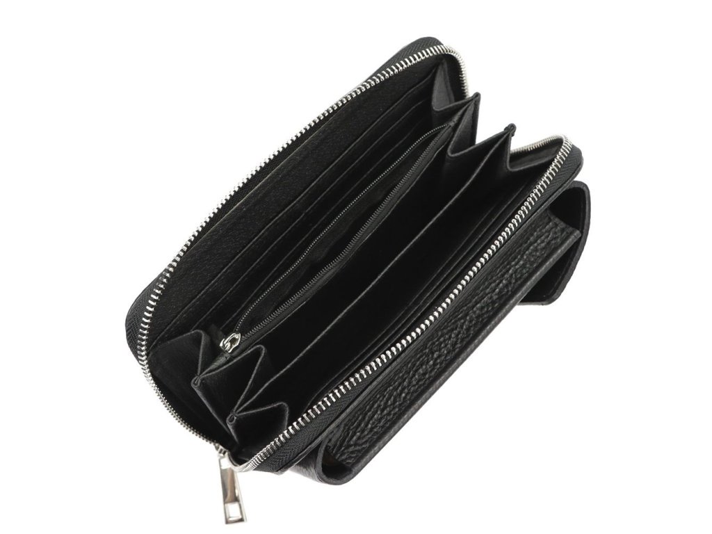- zadní oddíl je na zip a je tvořen podélnou peněženkou, ve které je 8 slotů na karty či doklady, dále 2 zastrkávací přihrádky, 3 otevřené přihrádky na bankovky a samozřejmě kapsičkou na mince na zip