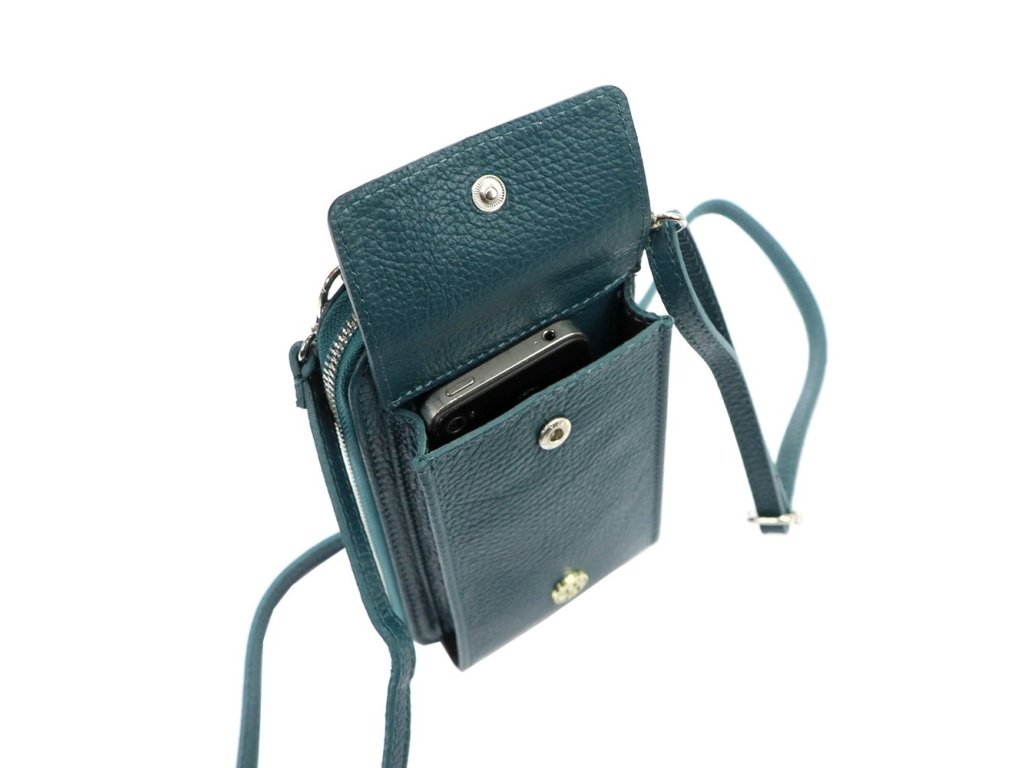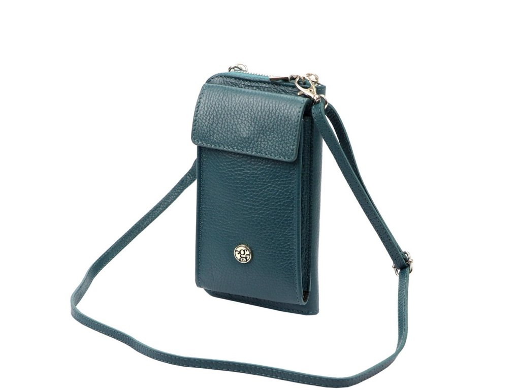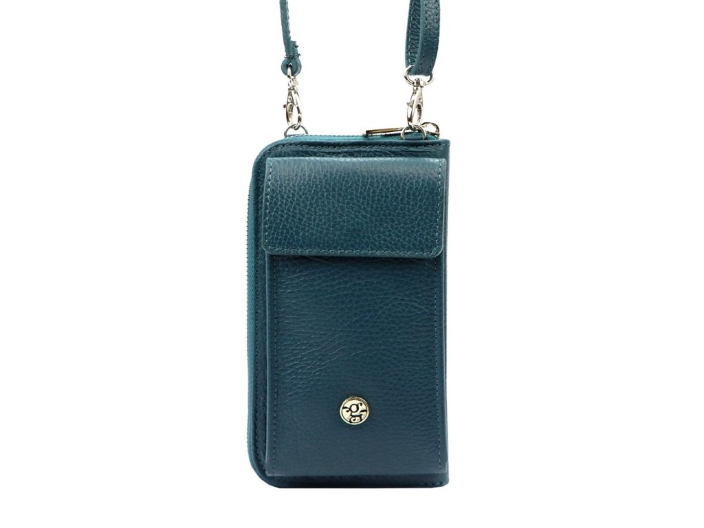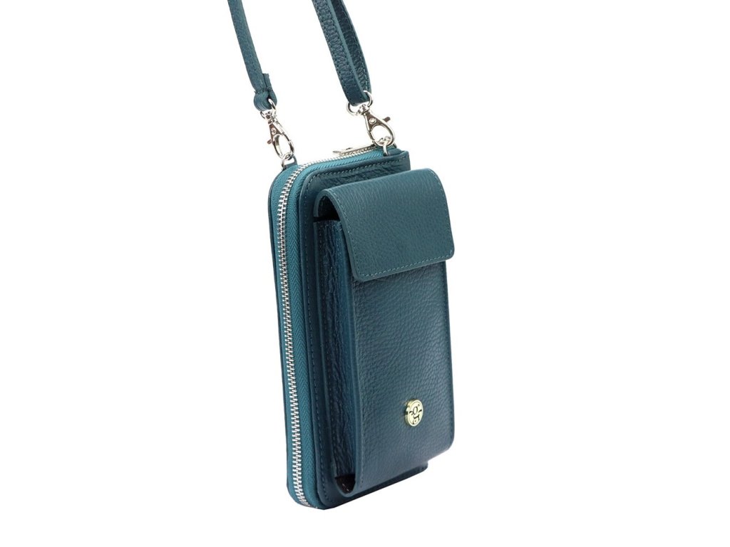 Malá kožená crossbody kabelka (pouzdro na mobil a peněženka) Gregorio 07 tyrkysová - gold