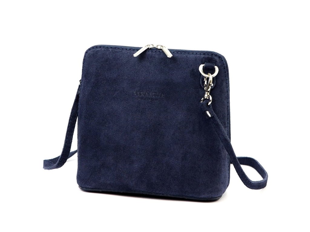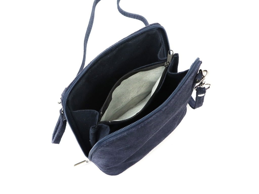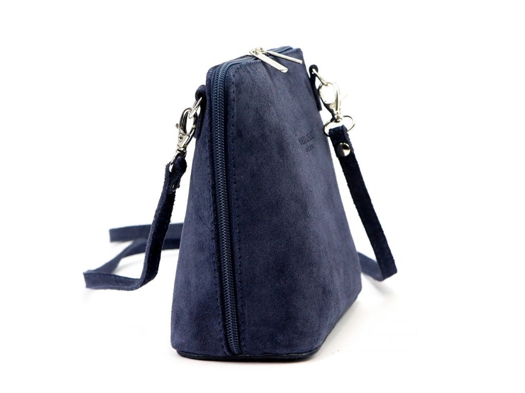 Malá kožená semišová crossbody kabelka no. 03 tmavěmodrá