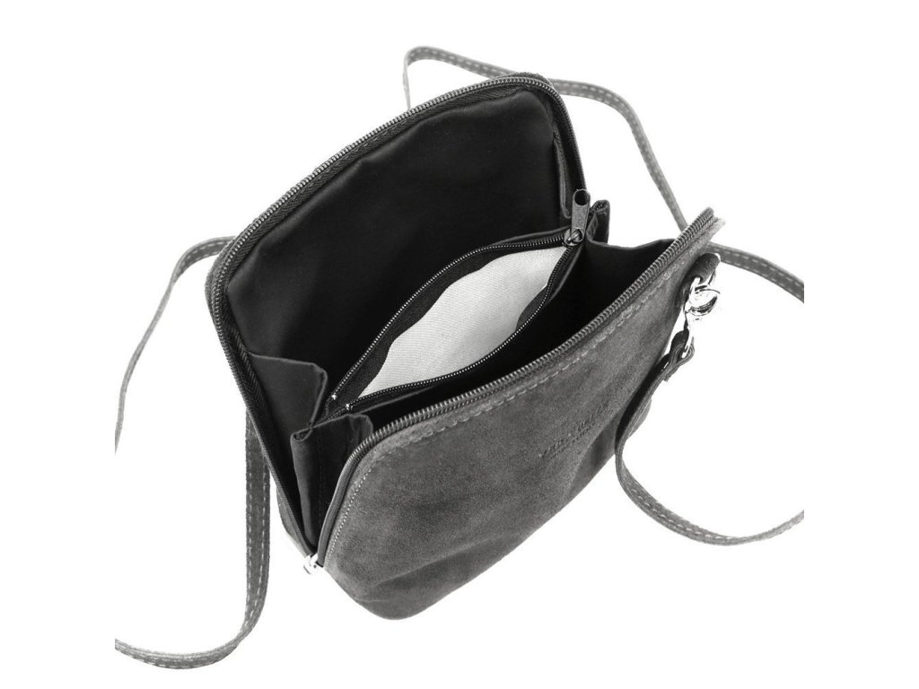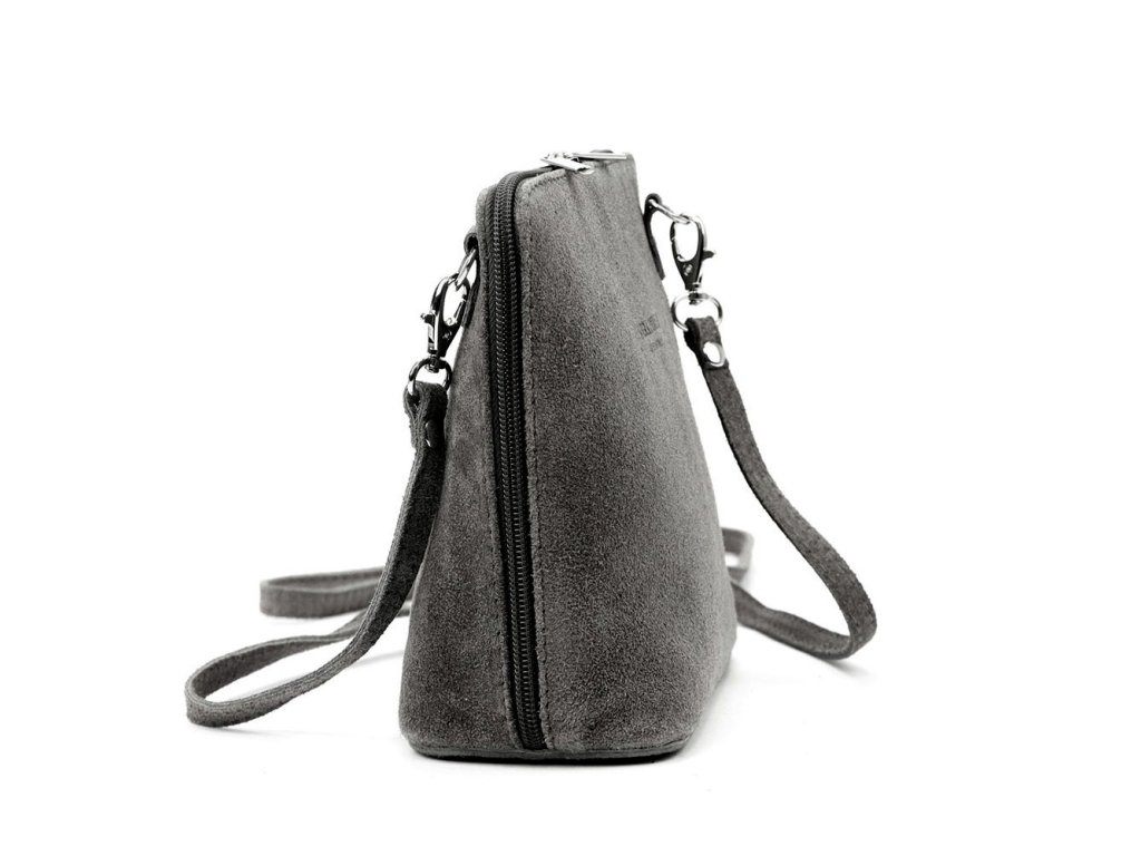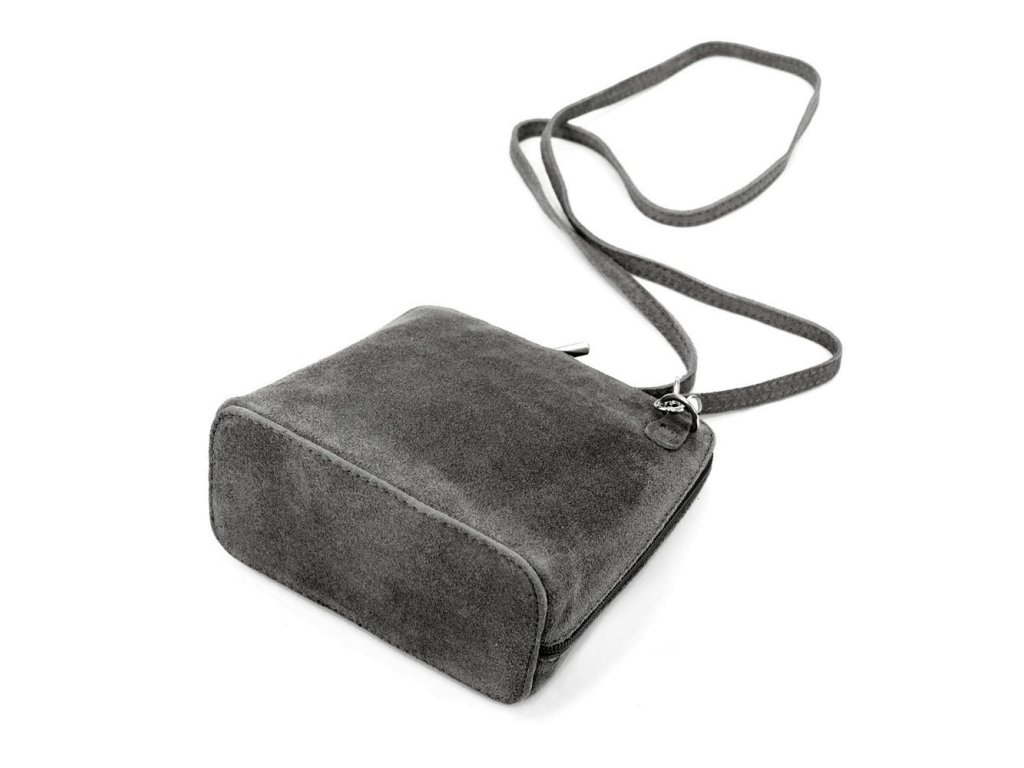 Malá kožená semišová crossbody kabelka no. 03 tmavěšedá