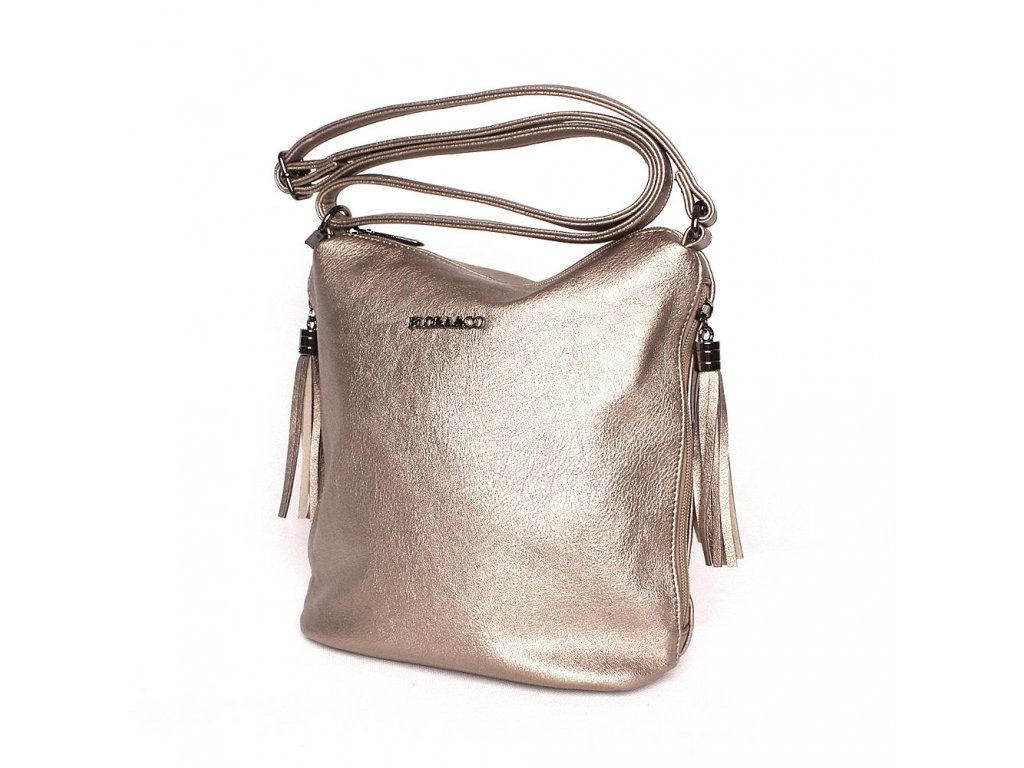 Crossbody kabelka značky FLORA&CO o rozměrech 24 x 26 x 11 cm v zlatém barvě