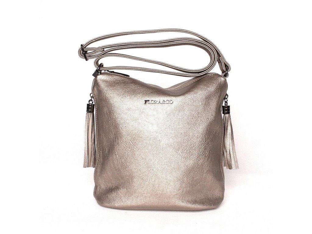 Originální crossbody kabelka značky FLORA&CO se dvěma ozdobnými střapci na jezdcích ve stříbrném barevném odstínu.