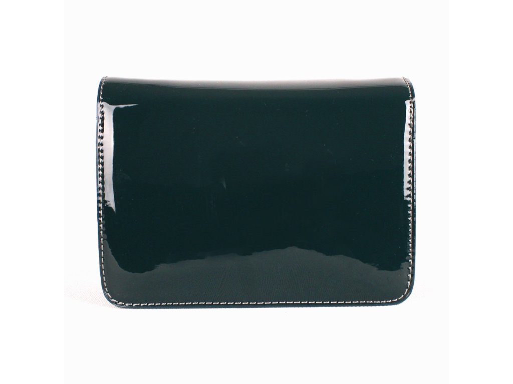 - kabelka se uzavírá na přehoditelnou klopu, která se uchycuje zacvakávacím patentem, pod kterou je kabelka v podstatě rozdělená na pět samostatných částí