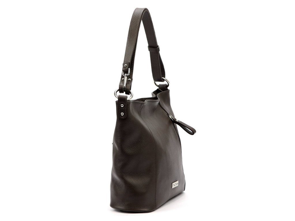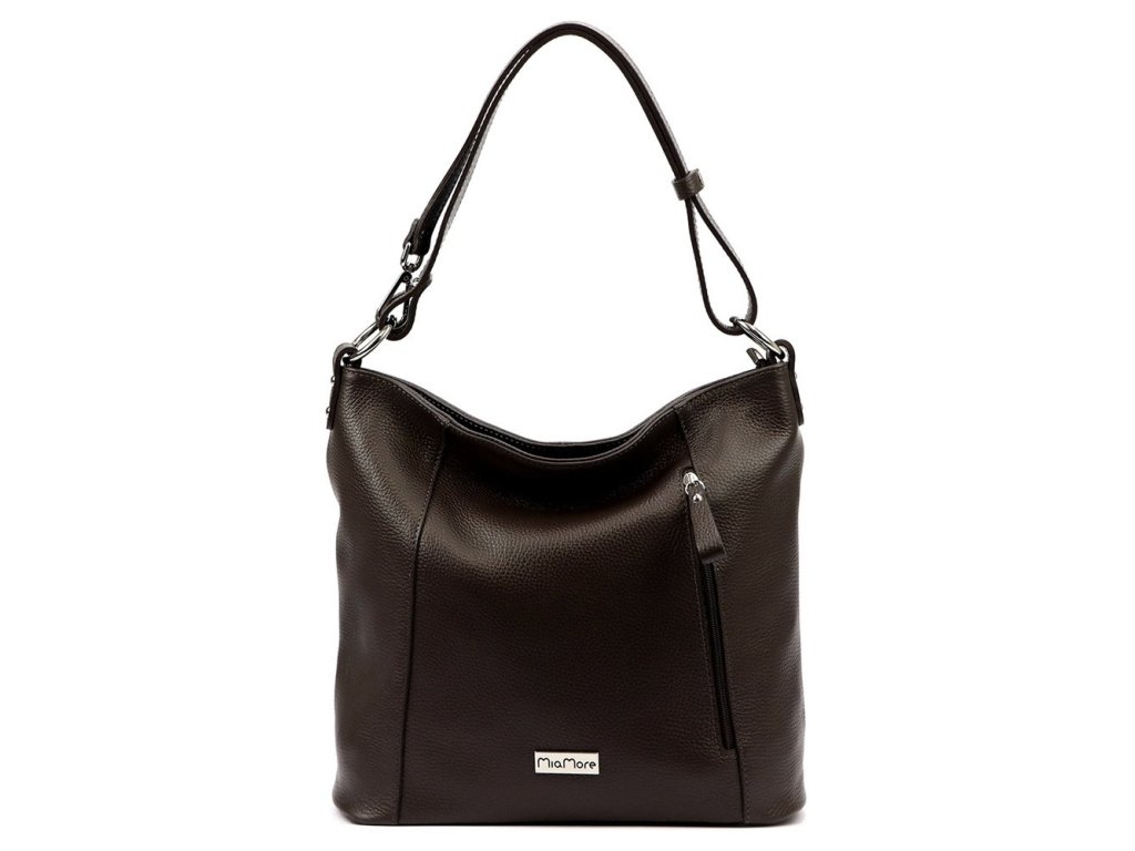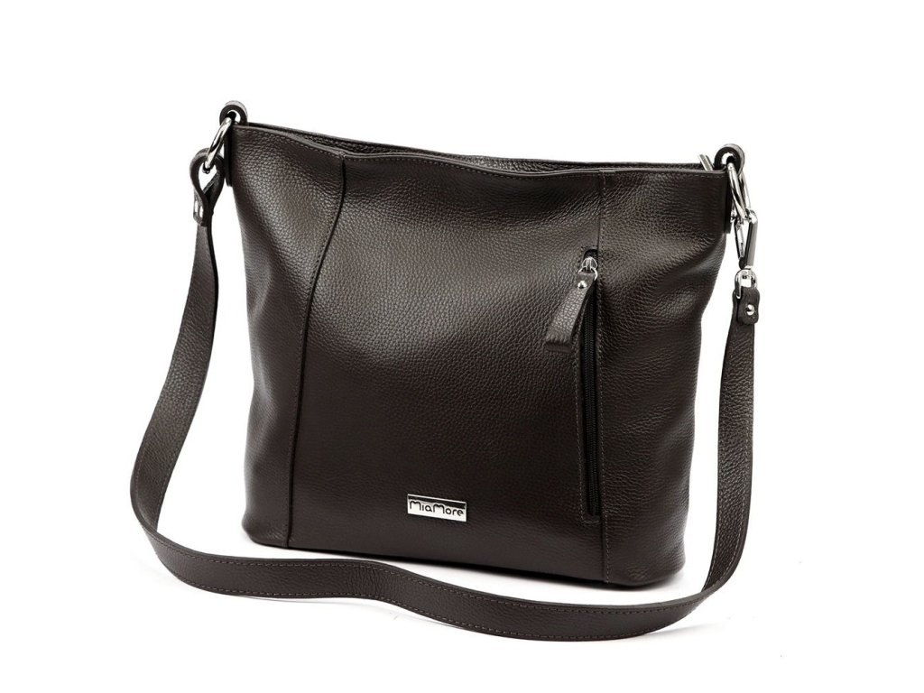 Středně velká kožená kabelka na rameno MiaMore v tmavěhnědé barvě