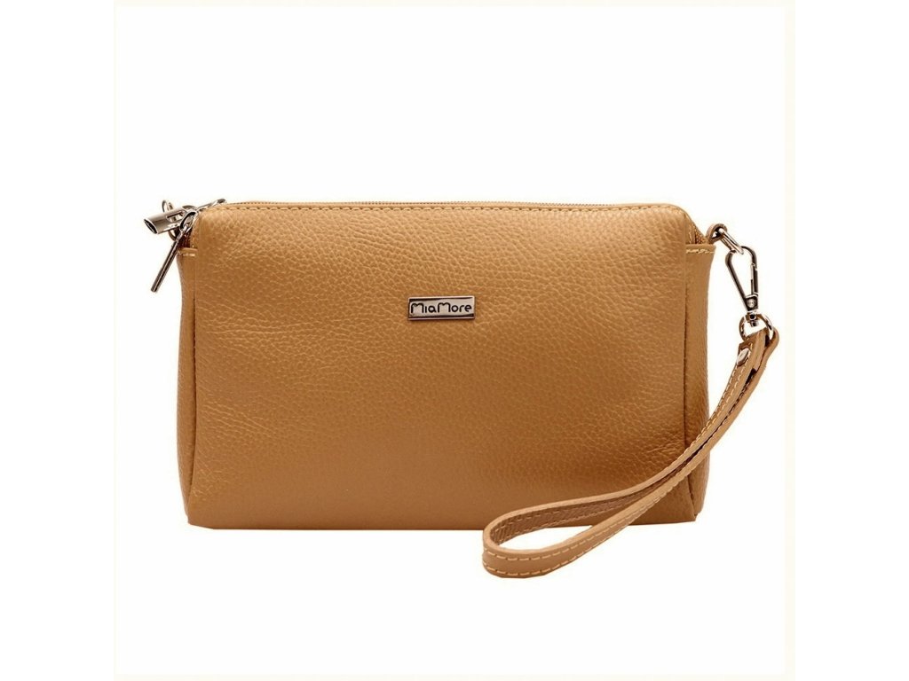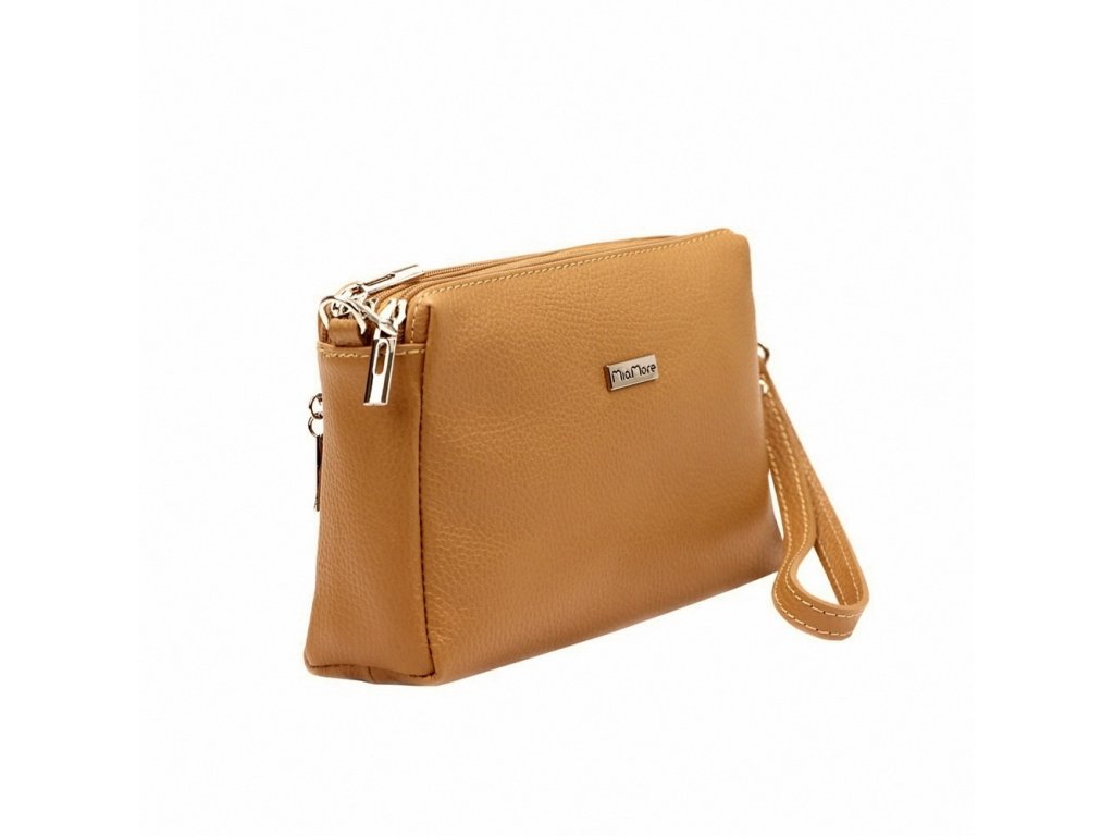 Tříoddílová malá hnědá kožená crossbody kabelka Mia More no. 42