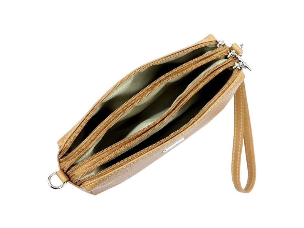 - disponuje dvěma odnímatelnými uchy, krátkým, pro nošení kabelky kolem zápěstí a dlouhým popruhem pro nošení kabelky jako crossbody