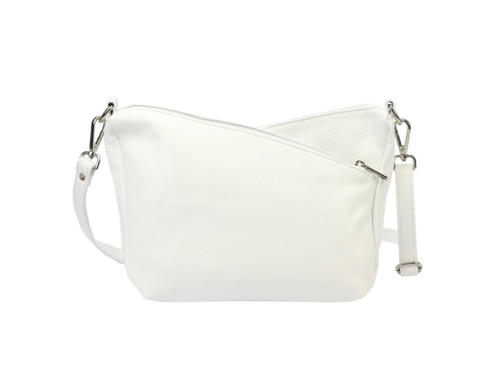 Středně velká tříoddílová kožená crossbody kabelka Luka (Itálie) v bílé barvě