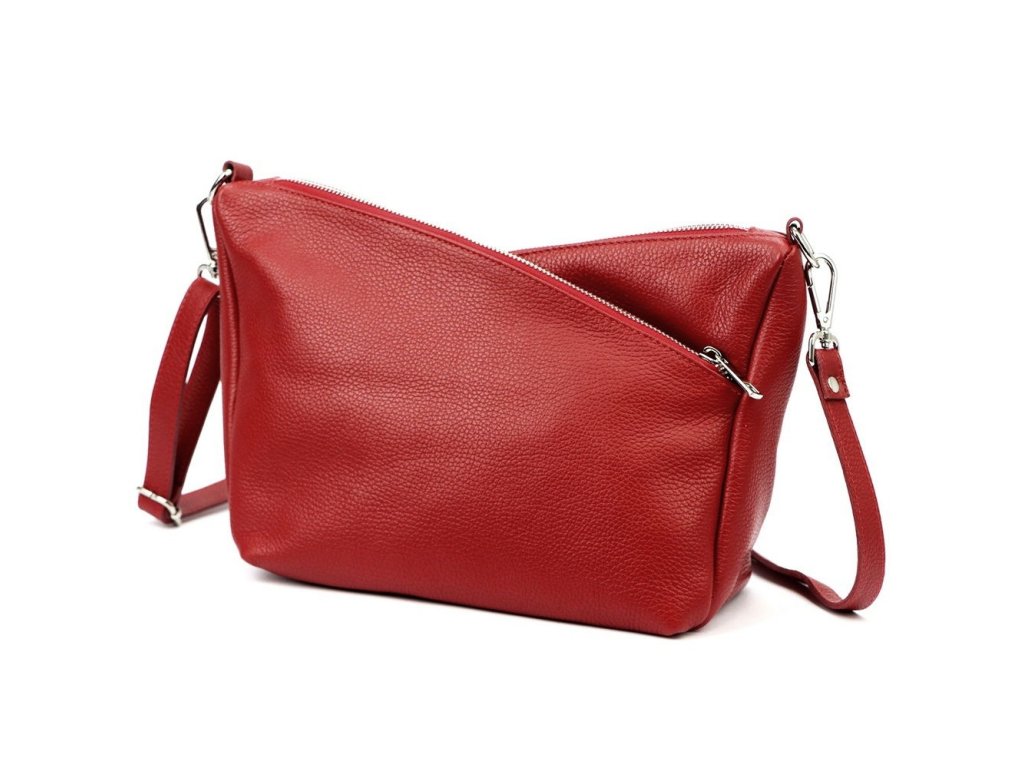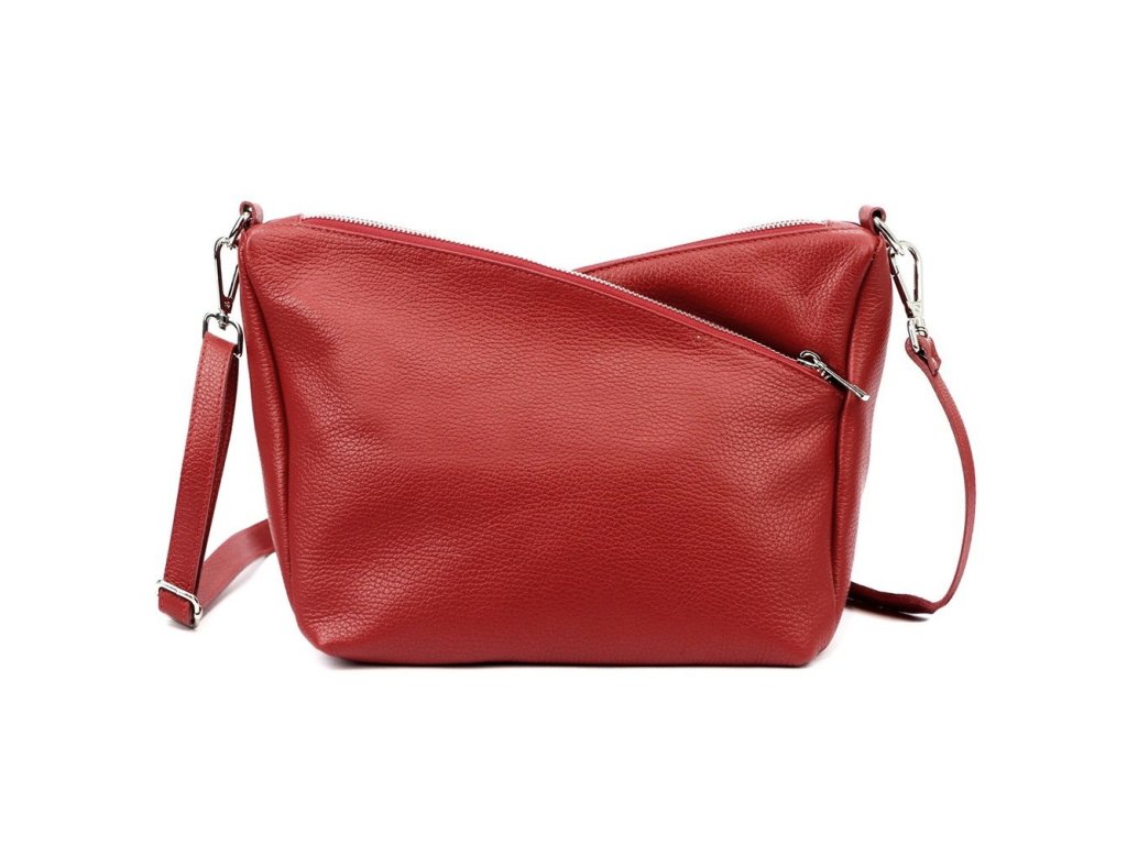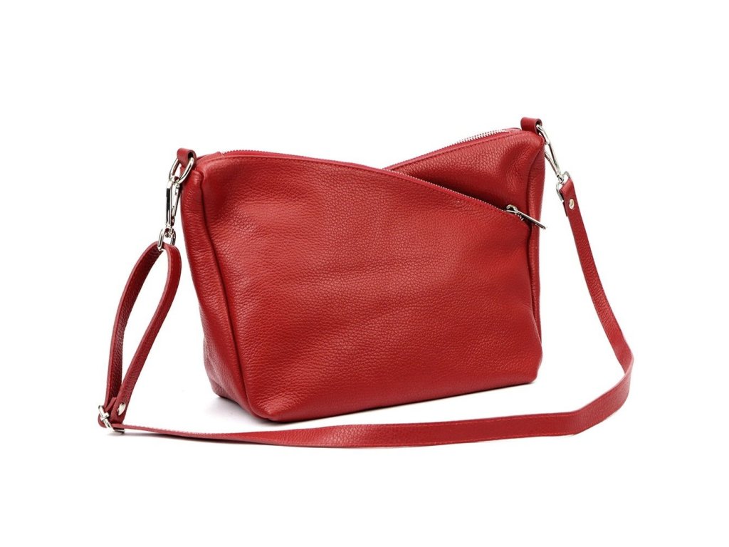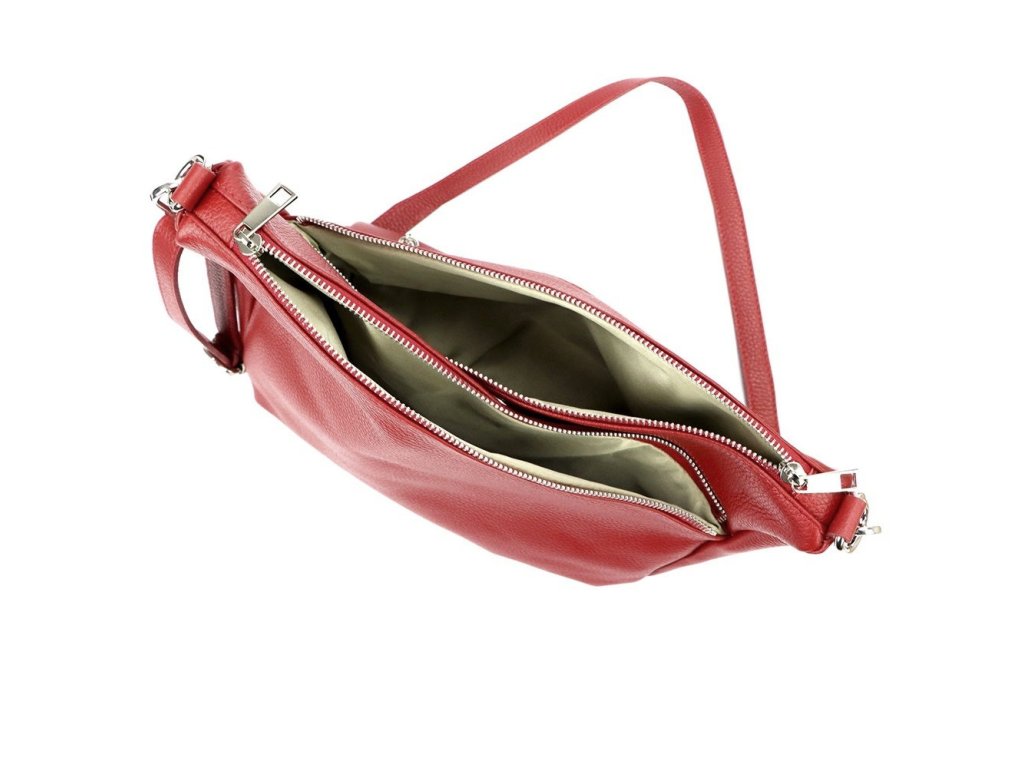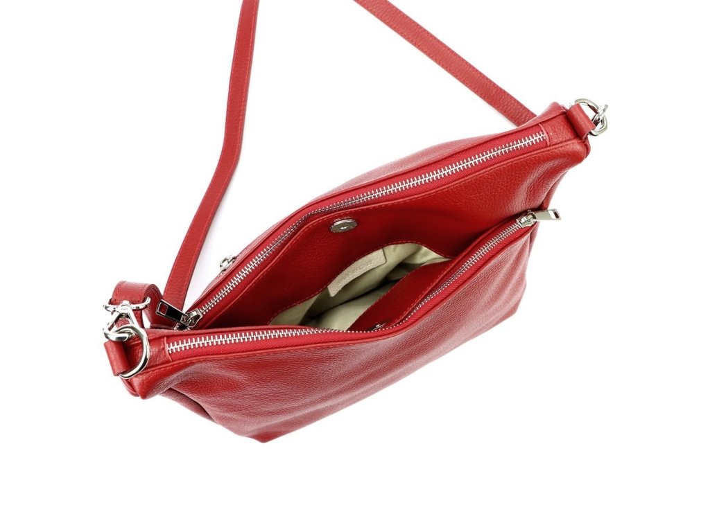 Středně velká tříoddílová kožená crossbody kabelka Luka (Itálie) v červené barvě