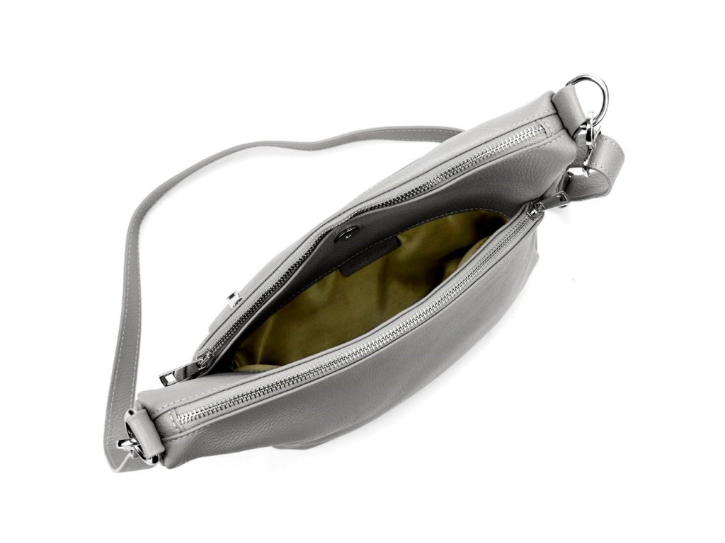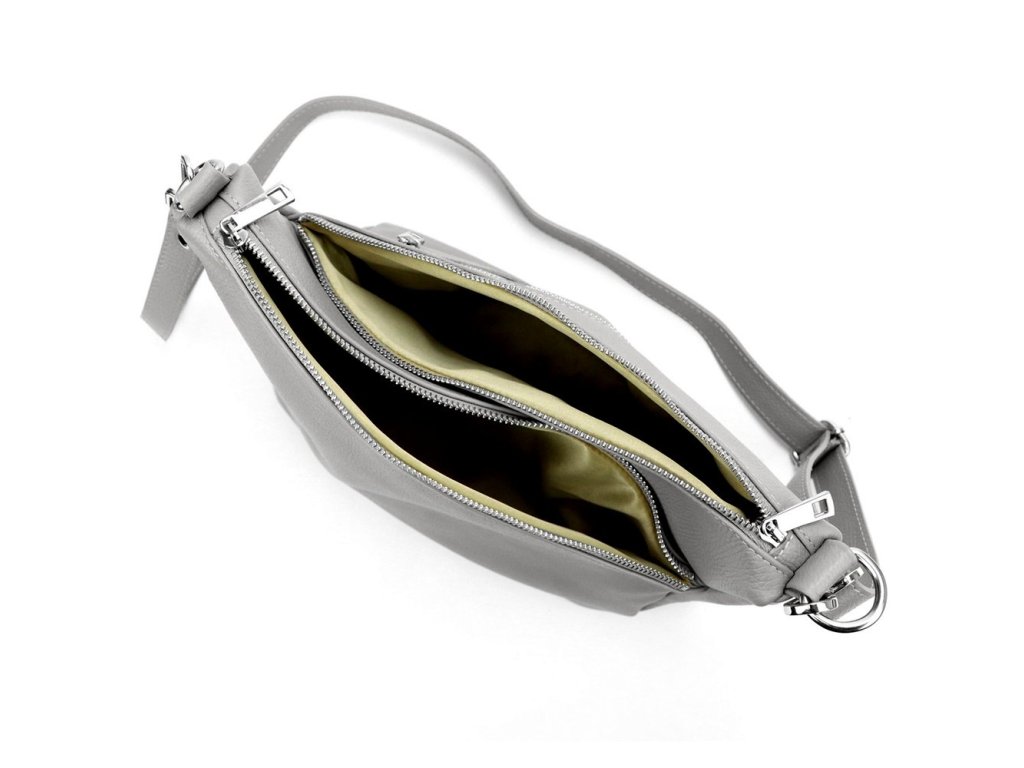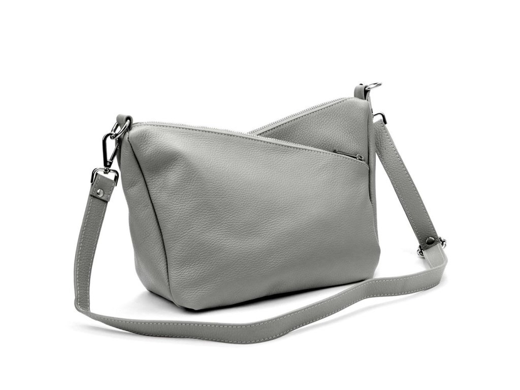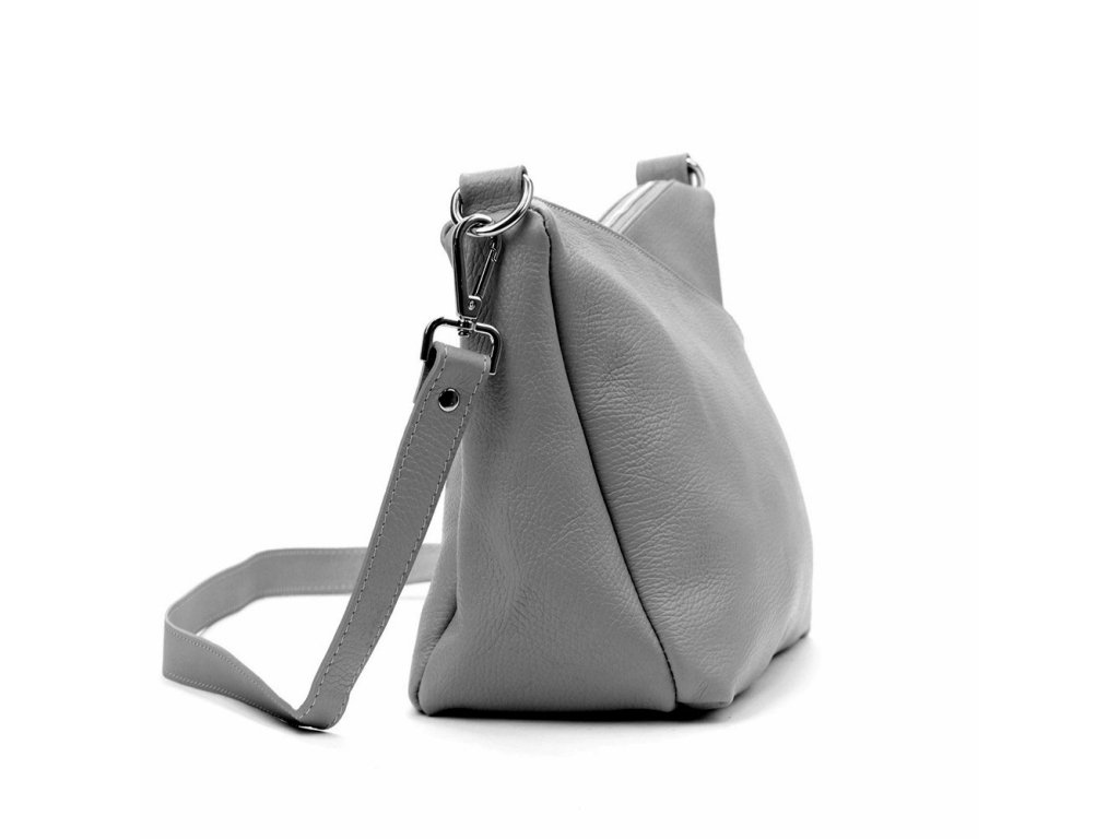 Středně velká tříoddílová kožená crossbody kabelka Luka (Itálie) v šedé barvě