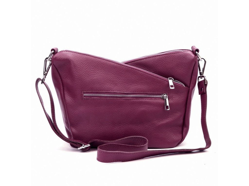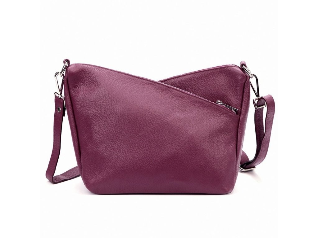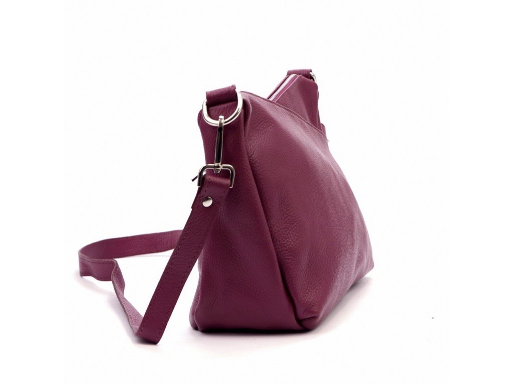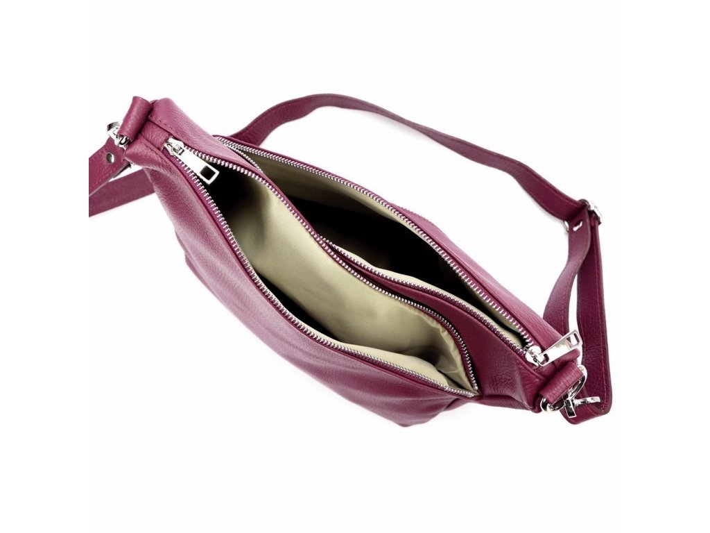 Středně velká tříoddílová kožená crossbody kabelka Luka (Itálie) ve vínové barvě