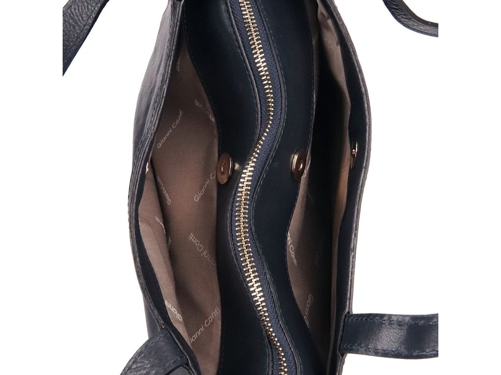 Tříoddílová velká značková kožená kabelka na rameno Gianni Conti 494 tmavěmodrá