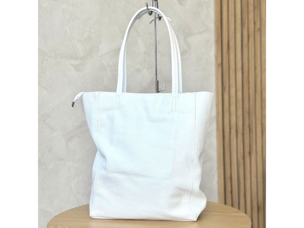 Velká kožená kabelka o velikosti 35 x 30 x 12 cm v bílé barvě