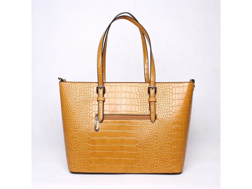 Elegantní velká kabelka do ruky o rozměrech 33 (43) x 27 x 14 cm v hořčicové barvě