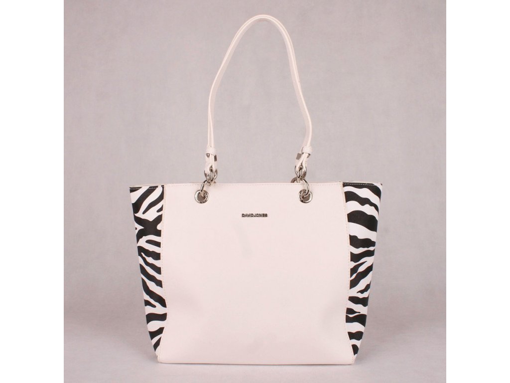 Velká kabelka na rameno David Jones se vzorem zebry CM5752 bílá