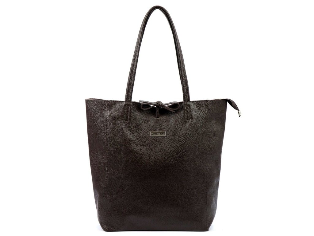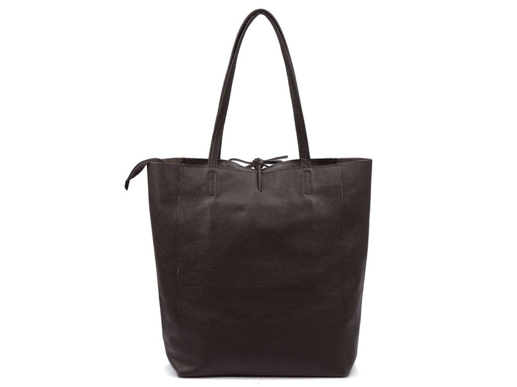 Velká kožená kabelka o velikosti 35 x 30 x 12 cm v tmavěhnědé barvě