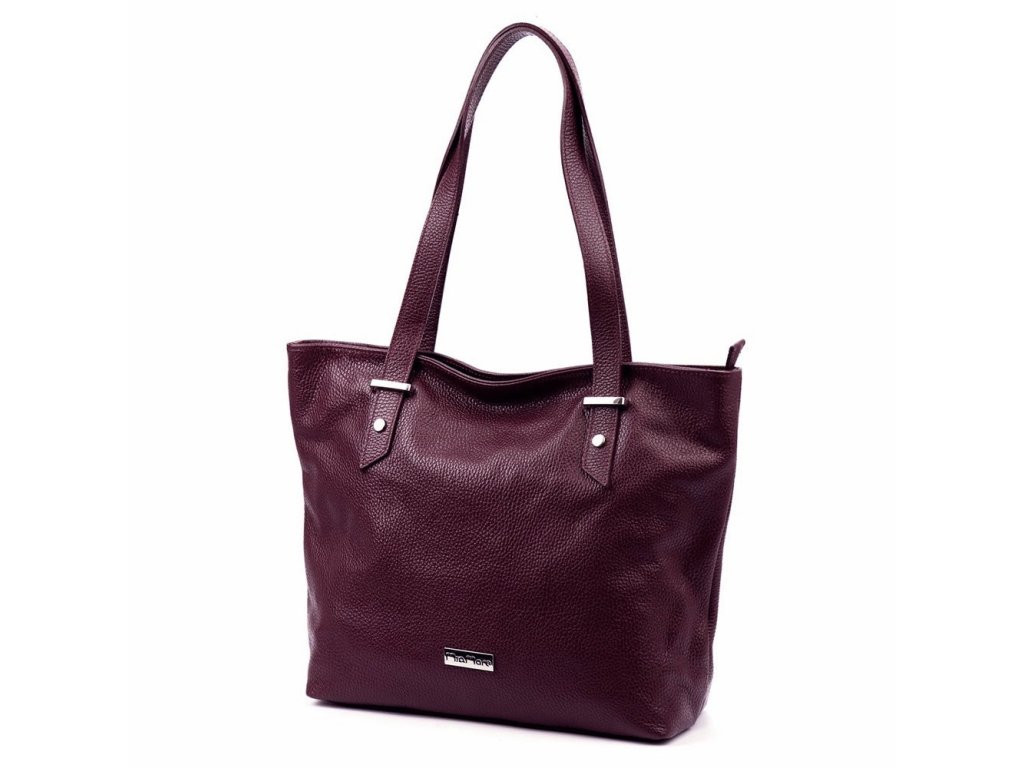 Velká kožená kabelka na rameno/do ruky MiaMore no. 058 tmavěvínová