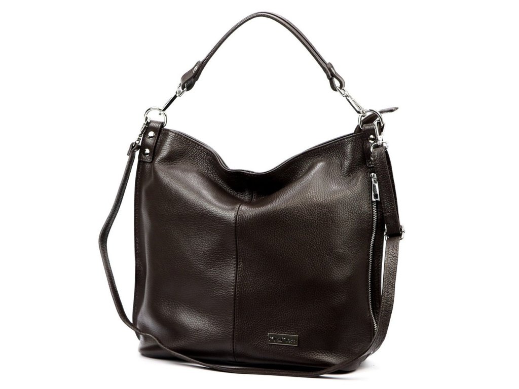 Velká kožená hnědá kabelka na rameno. Moderní italský kvalitní kožený doplněk každé ženy.