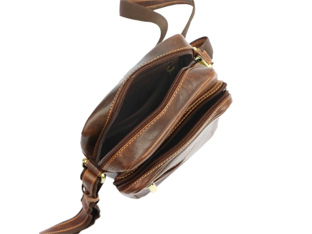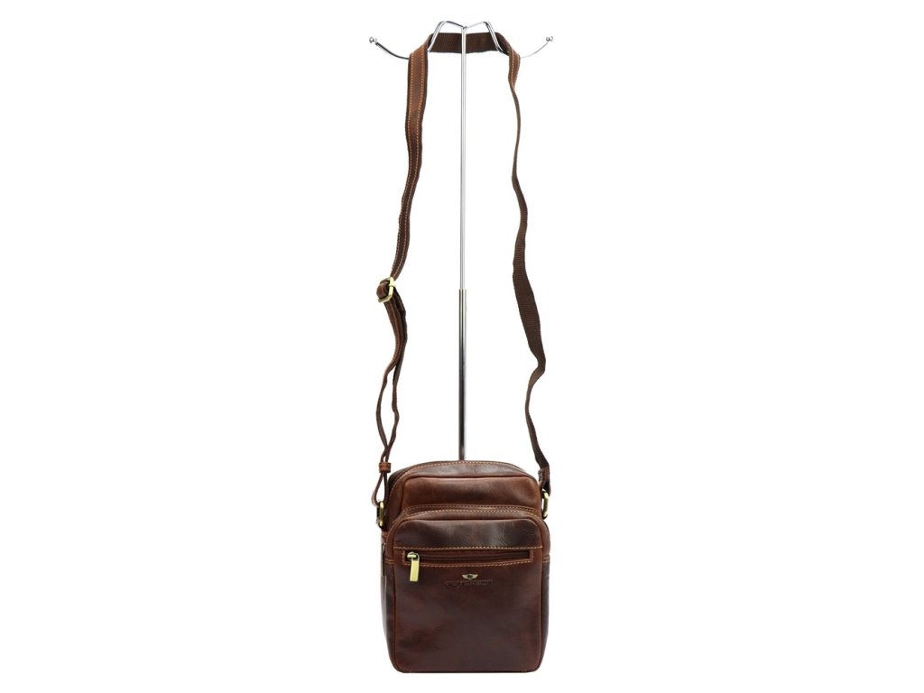 Dvouoddílová středně velká pánská kožená crossbody taška Peterson TB11 hnědá