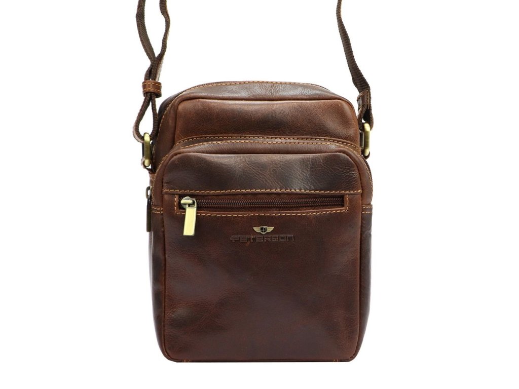 Kožená středně velká pánská crossbody taška značky Peterson v hnědé barvě