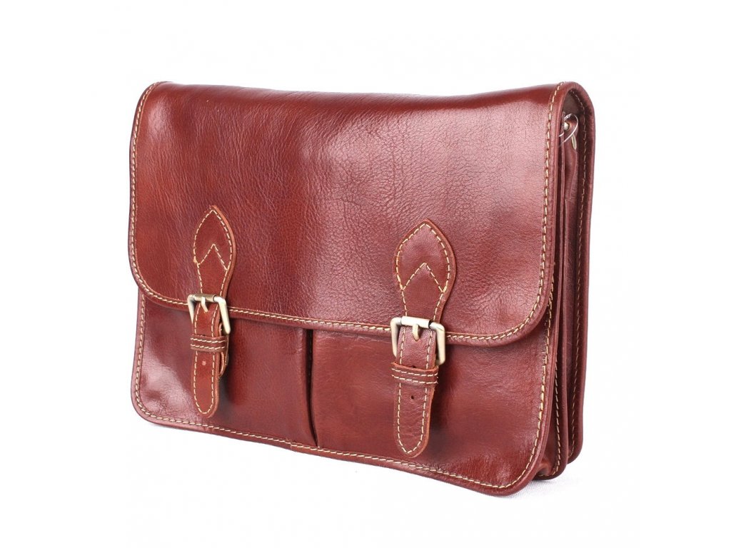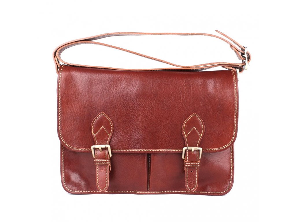 Hladká kožená crossbody aktovka Vera Pelle no. 8320 tmavěhnědá